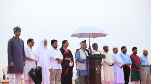 অন্তর্বর্তী সরকারের প্রধান উপদেষ্টা অধ্যাপক মুহাম্মদ ইউনূস আজ মঙ্গলবার রাজধানীর মানিক মিয়া অ্যাভিনিউতে ‘৩৬ জুলাই উদ্যাপন’ শীর্ষক অনুষ্ঠানে জুলাই ঘোষণাপত্র পাঠ করেছেন। সেখানে জুলাই গণ-অভ্যুত্থানের বর্ষপূর্তি উপলক্ষে এ অনুষ্ঠান চলছে।…
