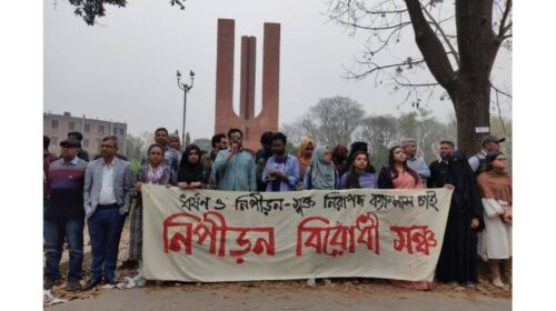 জাহাঙ্গীরনগর বিশ্ববিদ্যালয়ের (জাবি) আবাসিক হলে স্বামীকে বেঁধে রেখে স্ত্রীকে ধর্ষণের ঘটনার সুষ্ঠু বিচারের দাবিতে আন্দোলন অব্যাহত রেখেছেন বিশ্ববিদ্যালয়টির শিক্ষক-শিক্ষার্থীরা। আন্দোলনের তৃতীয় দিনে এসে জড়িতদের ধর্ষক-নিপীড়কদের বিচার না হলে ‘উপাচার্য পতন’…