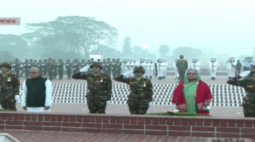 মহান বিজয় দিবস উপলক্ষে রাষ্ট্রপতি মো. আবদুল হামিদ ও প্রধানমন্ত্রী শেখ হাসিনা সাভারে জাতীয় স্মৃতিসৌধে ফুল দিয়ে মুক্তিযুদ্ধের বীর শহীদদের প্রতি শ্রদ্ধা জানিয়েছেন। শুক্রবার (১৬ ডিসেম্বর) সকাল পৌনে ৭টার দিকে…